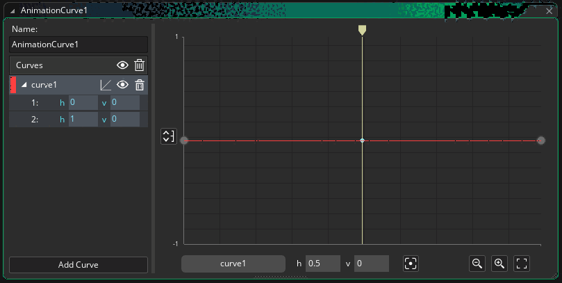 The next new feature we want to discuss here is a new top-level resource called Animation Curves. An animation curve is an asset that contains one or more curves that represent how a value changes over time, and can use linear interpolation or smooth interpolation to go between different points in the curve. The values you set can be between -1 and 1 (by default) on the vertical axis and the duration along the horizontal axis is always normalised form 0 to 1, making it easy to target different time ranges using multipliers in your game code.