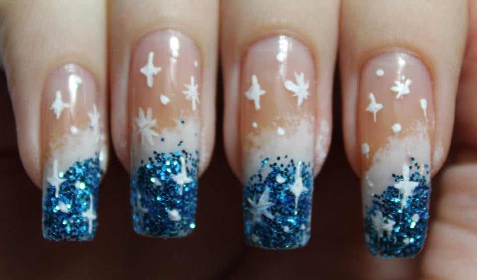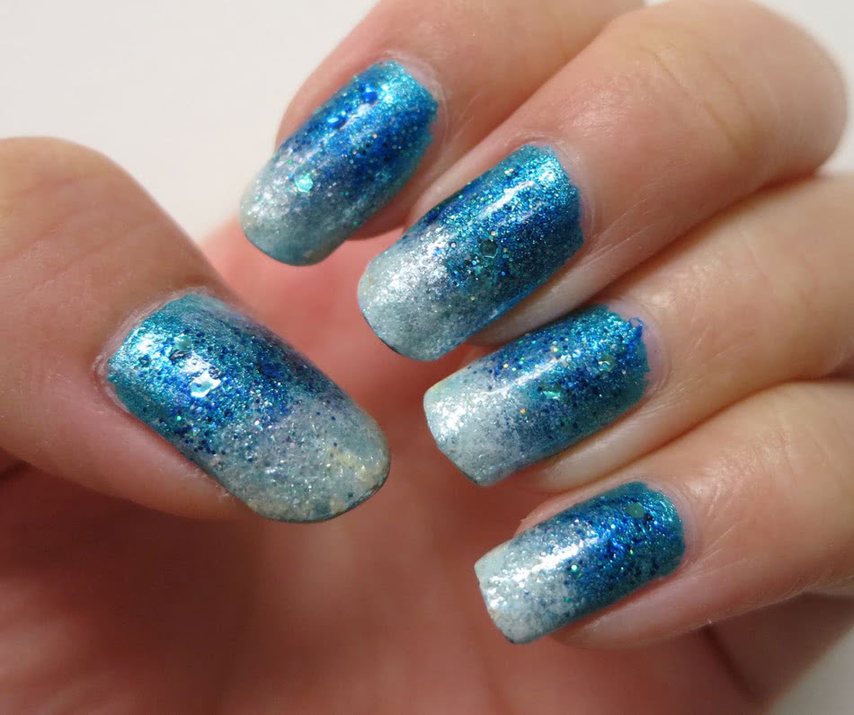 - Блестящий. Как таковой игры цветов здесь нет, используется только один лак. К нему добавляются блестки, количество которых будет уменьшаться ближе к границе перехода.