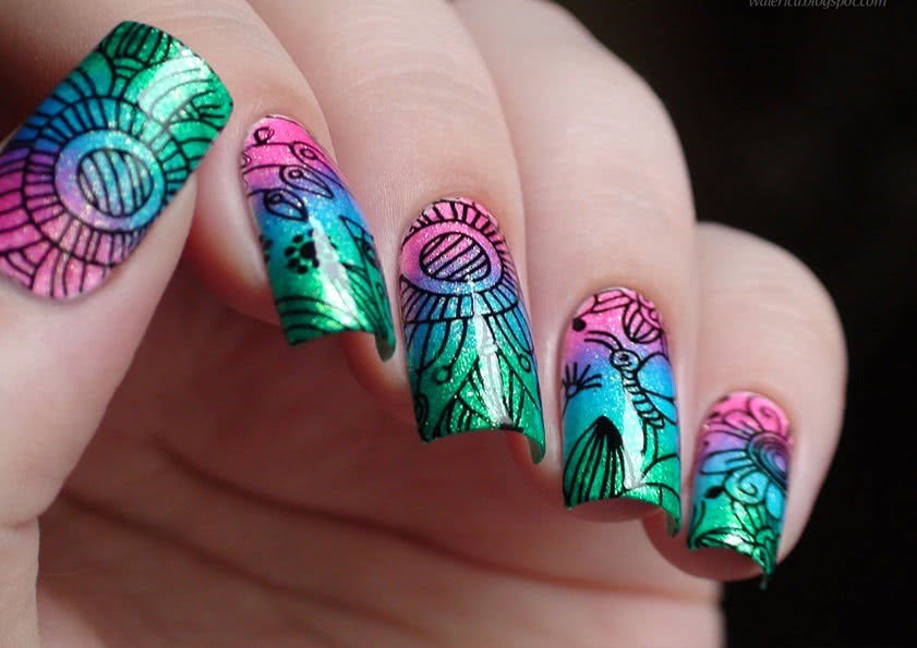 Яркие цвета – всегда поле деятельности для натур смелых и творческих. А с градиентом на ногтях есть, где разгуляться. Совмещение цветового разнообразия и фантазия при миксовании нескольких цветов прекрасно совмещаются в технике омбре.