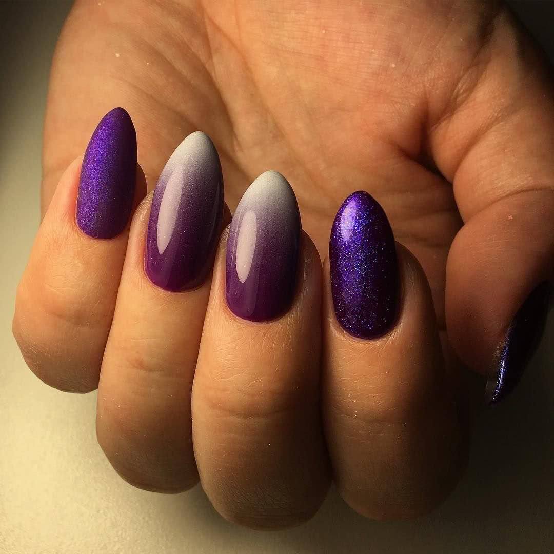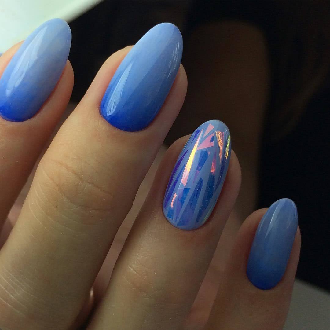 - Блестящий. Как таковой игры цветов здесь нет, используется только один лак. К нему добавляются блестки, количество которых будет уменьшаться ближе к границе перехода.