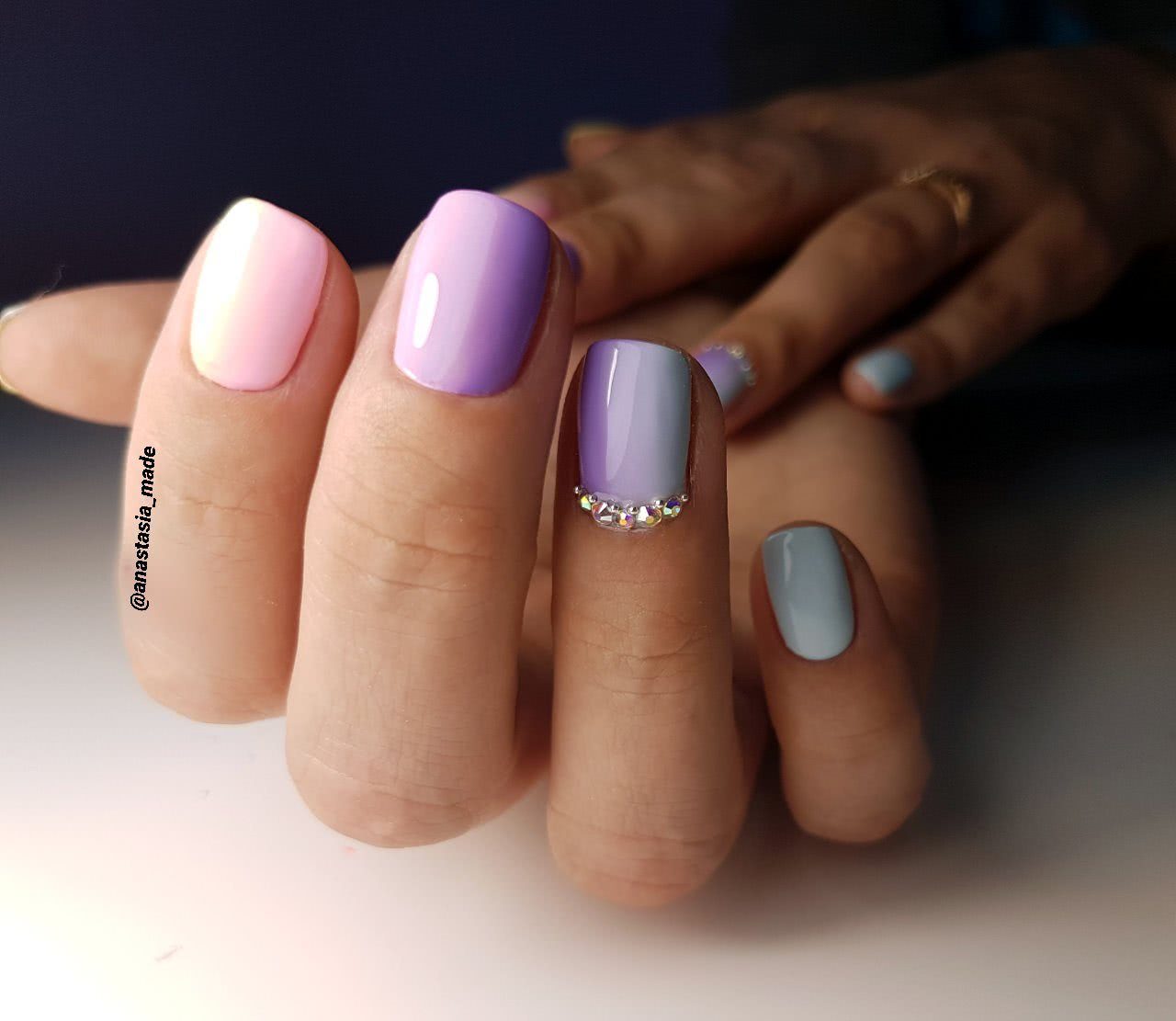 чтобы получить интересный маникюр, лучше использовать большее количество лаков;