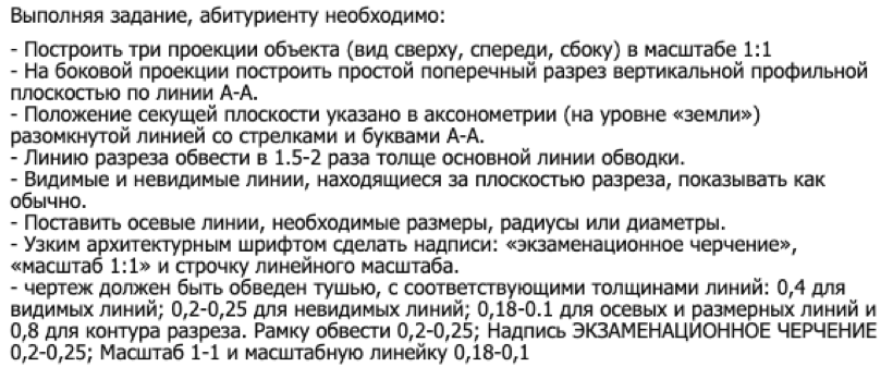 Поступающим может быть необходимо сдать экзамен по черчению. Например, в МИРХИ, это часть дополнительного вступительного, минимальный проходной балл — 20 баллов.