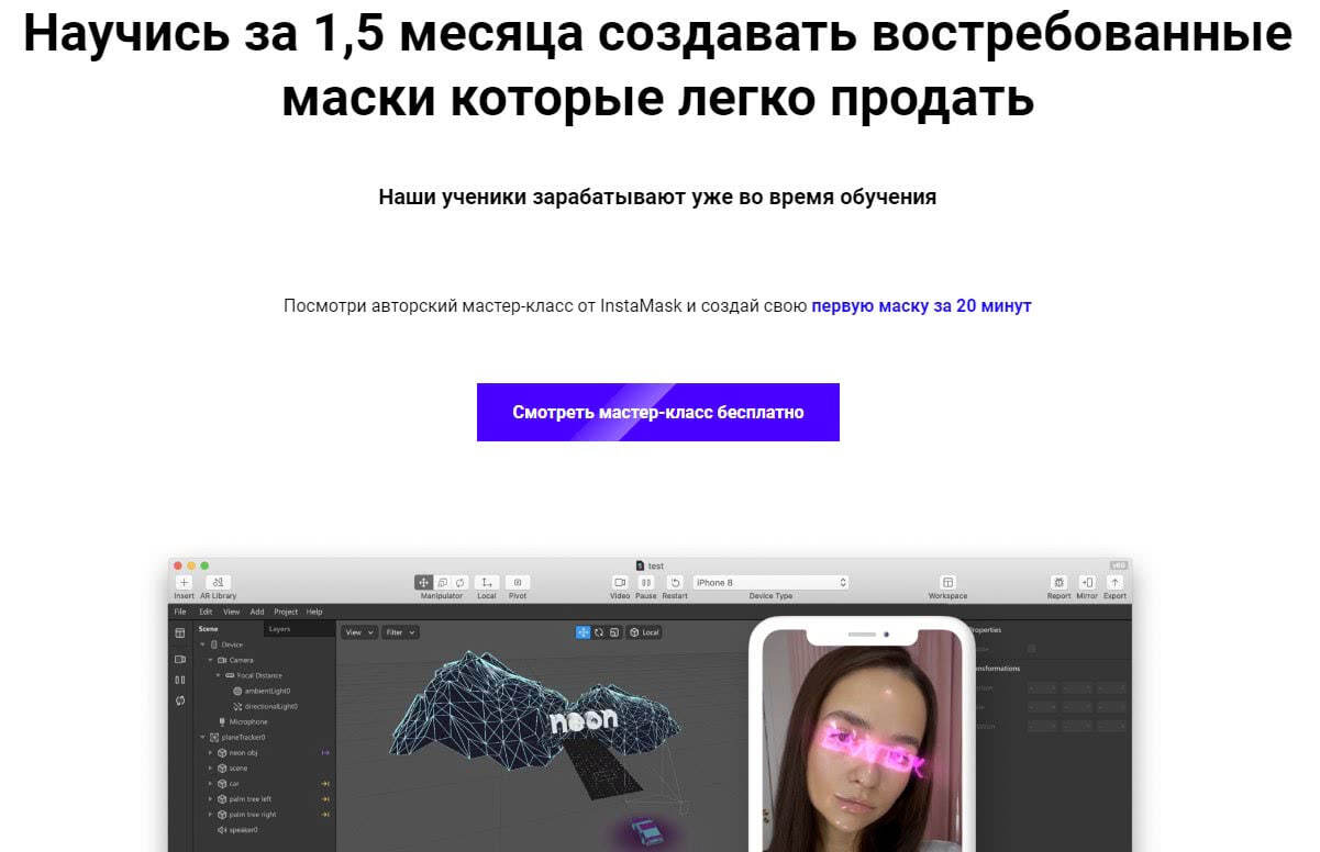 Онлайн-курс «Создание Instagram масок» | 4.85 / 5 | |