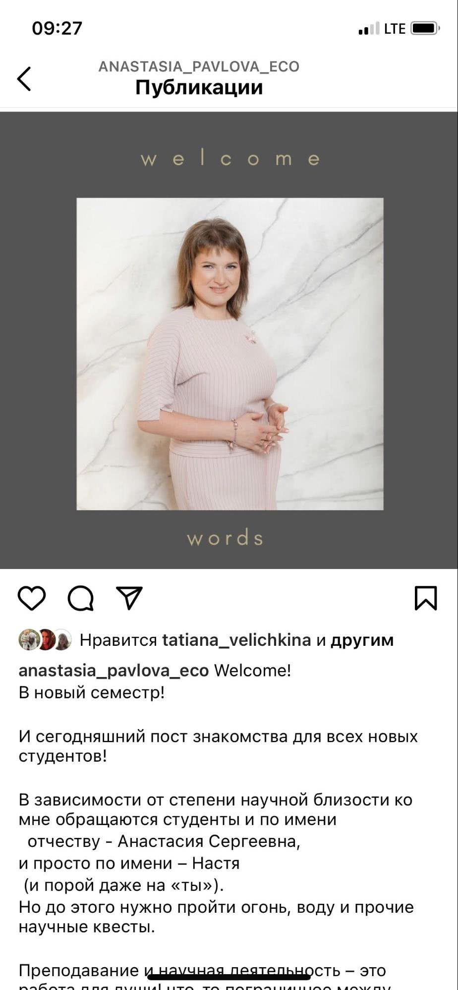 Пример одного из первых приветственных постов Анастасии в блоге: