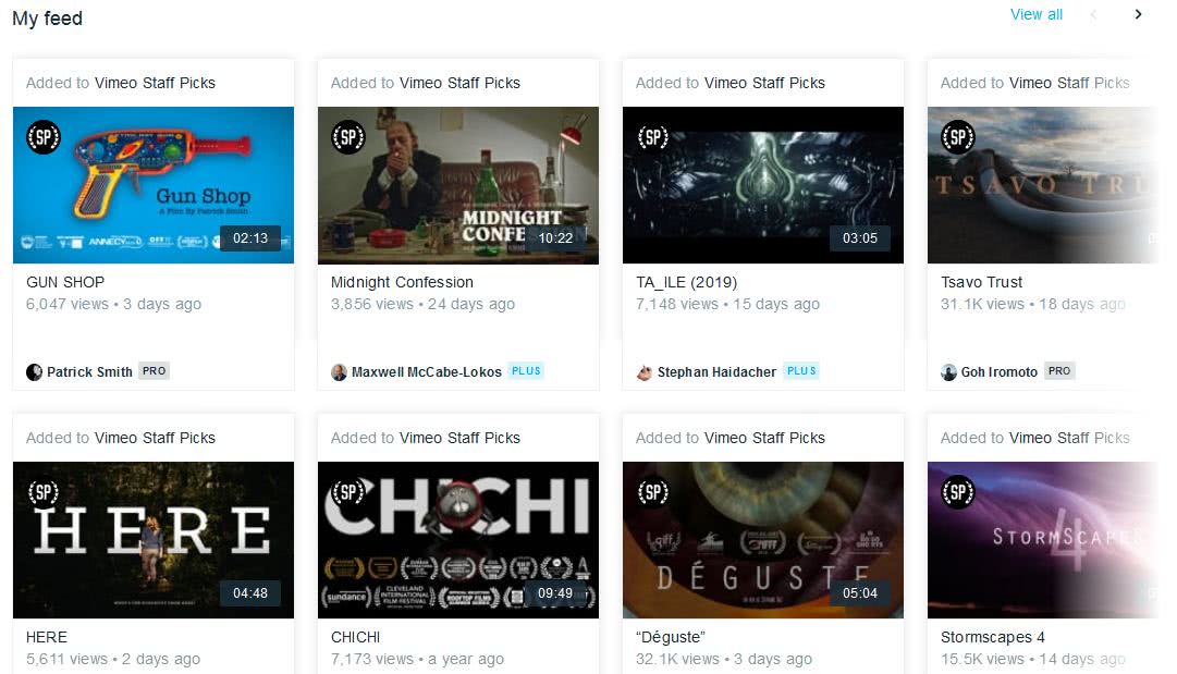Vimeo производит отличное впечатление благодаря высокому качеству видео. В частности, художники и дизайнеры загружают сюда крутые видео и анимацию. Представленные видео выглядят более качественно и профессионально, чем пёстрая масса любительских видеороликов на YouTube.