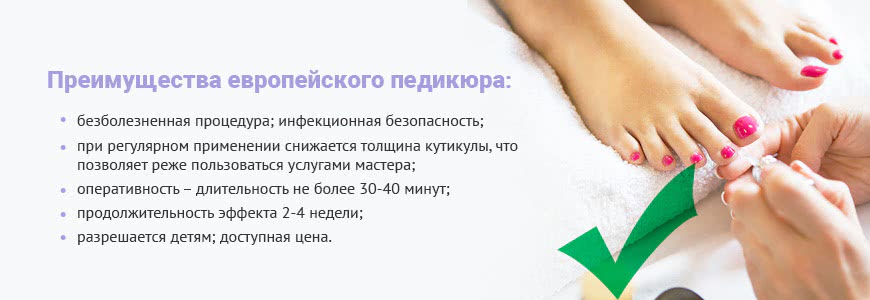 Европейский педикюр – это не только отличный эффект, но и практичная, расслабляющая процедура.