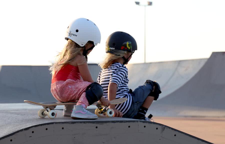 Для детей обязательна защита: налокотники, наколенники, шлем, перчатки.