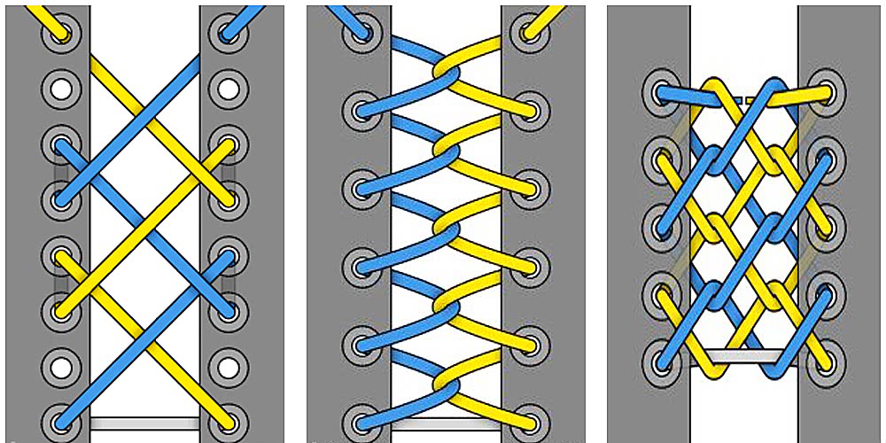 За века существования шнуровок, человечество придумало разнообразные виды плетения, чтобы тесемки не развязывались и удерживали обувь на месте. Многие из них стали настолько привычными, что регулярно используются в повседневной жизни.