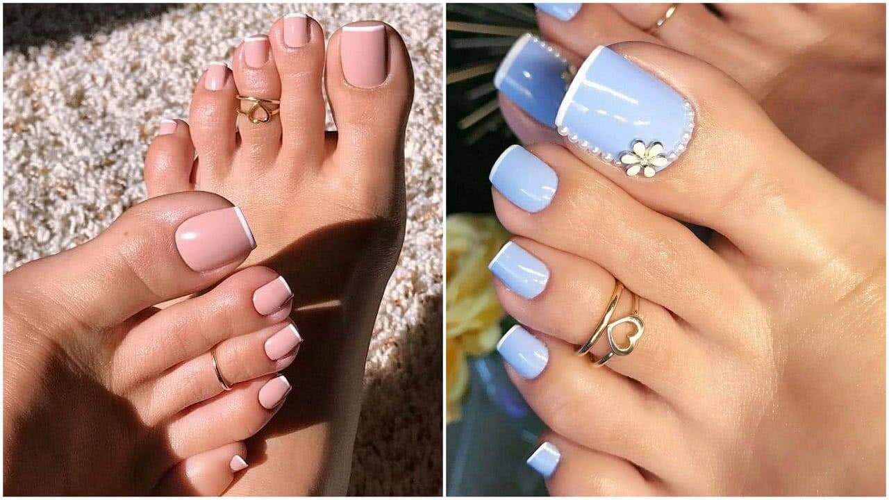 Среди вариантов дизайна для наращенного педикюра самым беспроигрышным является френч и лунный. Также модным оформлением считается матовое покрытие без сложного декора. Само по себе наращивание уже делает акцент на ногти, поэтому стилисты советуют делать легкие минималистичный рисунки. При этом допустимо немного освежить педикюр золотистыми или серебряными блестками.