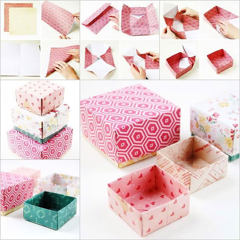 Вторую коробочку делаем так же, и благодаря тому, что квадрат бумаги был на сантиметр меньше, коробочка будет поменьше и хорошо войдет под крышку.