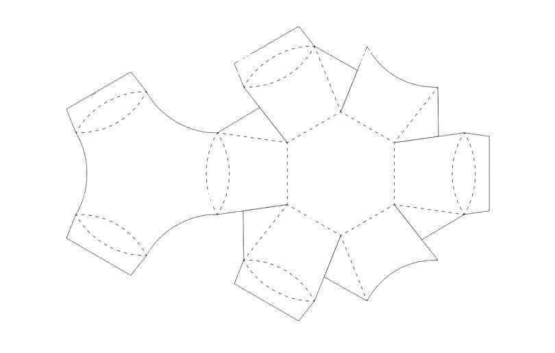 - Взять кусочек картона и нарисовать квадрат с полусферами отходящими от каждой стороны