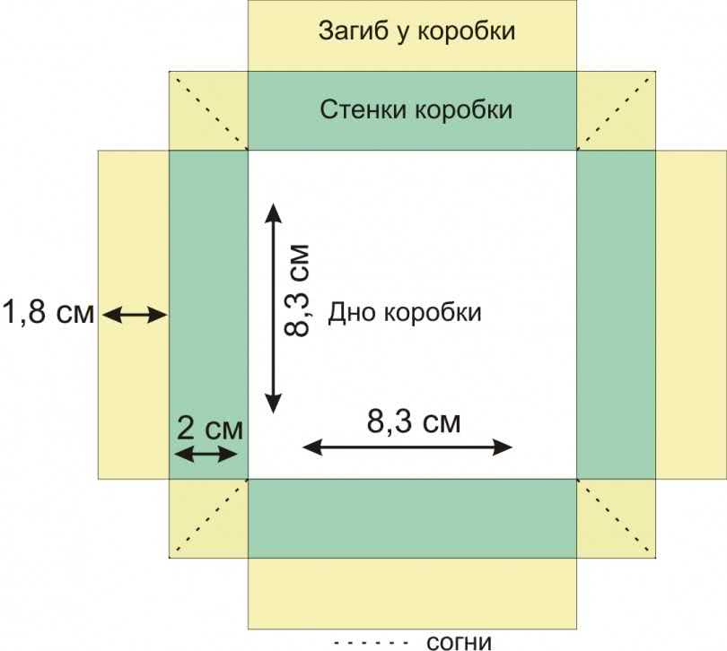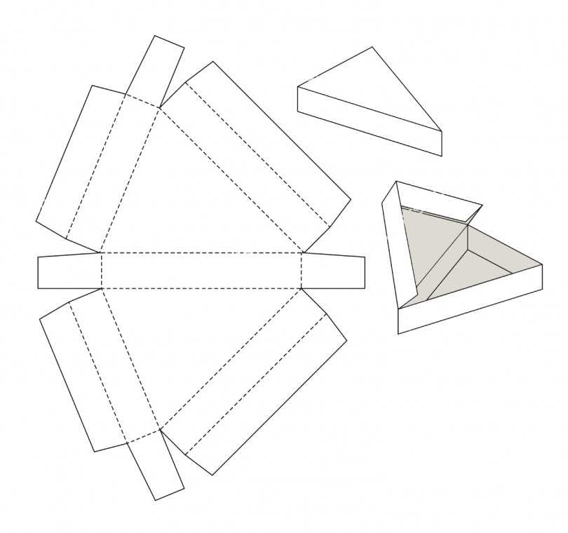 - Стороны треугольника имеют дополнительный запас бумаги для придания формы коробочки и для того, чтобы не было зазоров