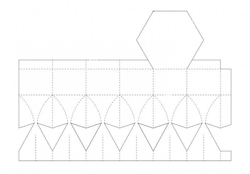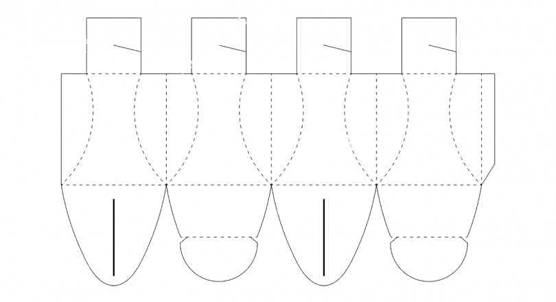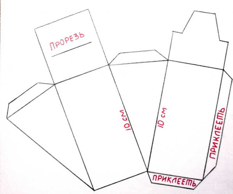 - Рисуем шаблон домика от руки, лучше с помощью линейки, подгибаем детали по пунктирным линиям