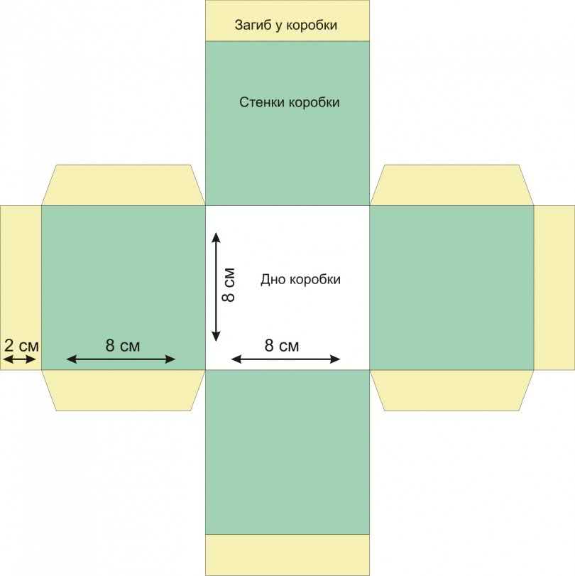 Готовую схему коробки необходимо распечатать на принтере, бумагу подбираем яркую, цветную. Можно вырезать шаблон из куска плотной бумаги, которую легко найти в каждом доме.