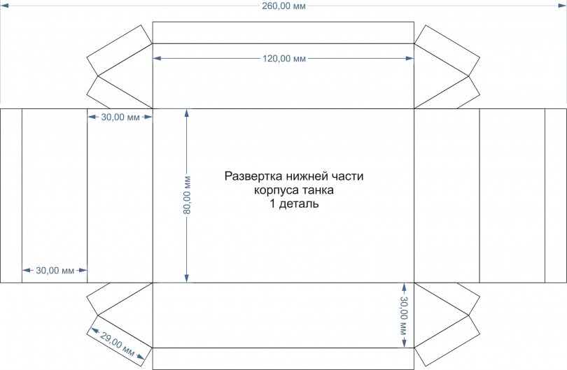 - Сделать на каждом углу надрезы по линии длинной стороны детали до пересечения прочерченных линий. Будет по 4 насечки на каждой из заготовок.
