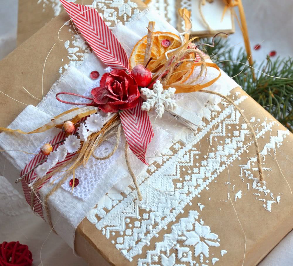Узоры, вырезанные из бумаги, делают подарок более душевным