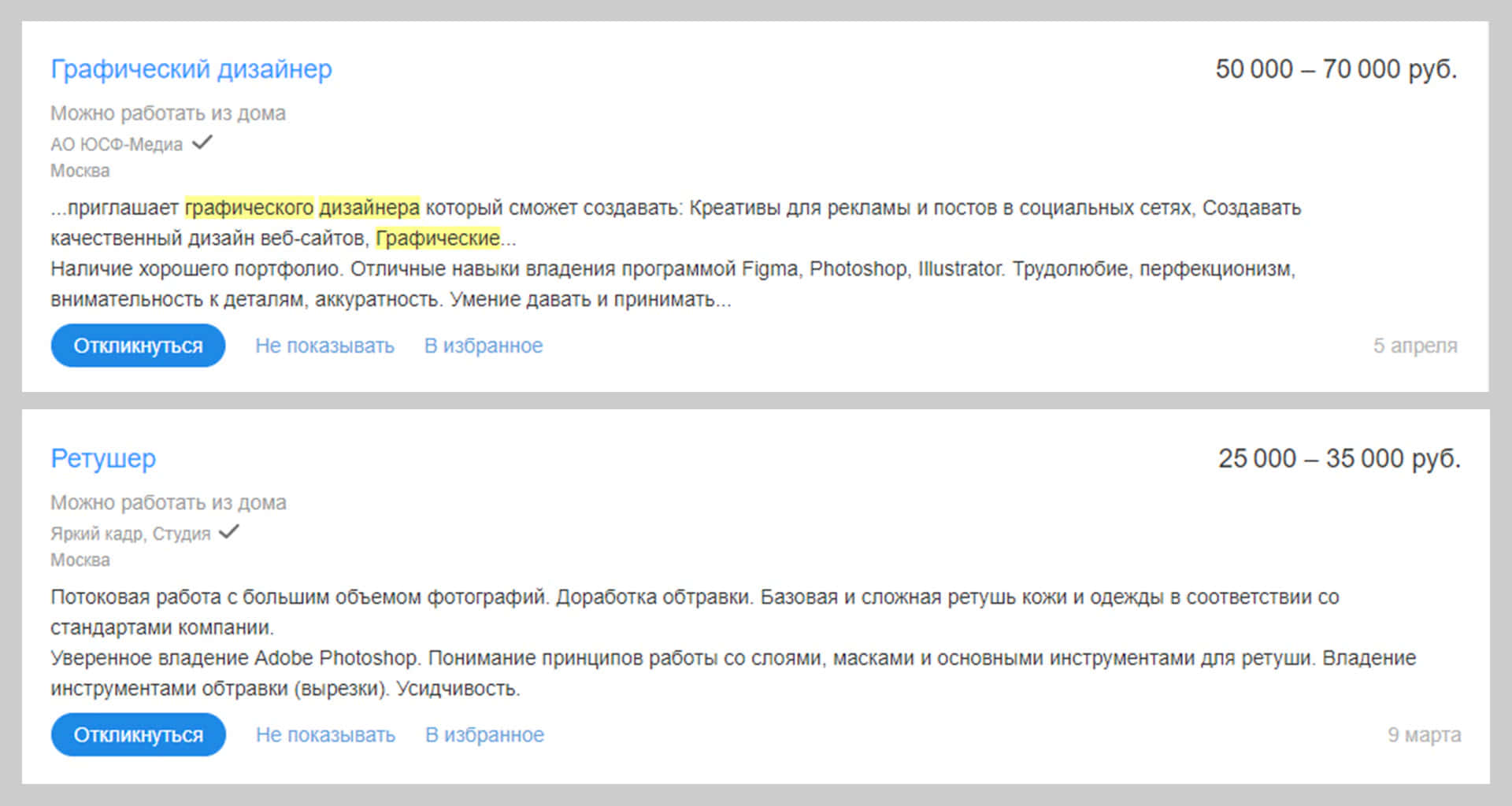Что в итоге: для человека разбирающегося в Фотошопе предложения по работе есть и их много, начиная от разовых заказов на фрилансе и заканчивая вакансиями по трудоустройству на постоянную занятость с возможностью работать удалённо и стабильно получать хорошую зарплату.