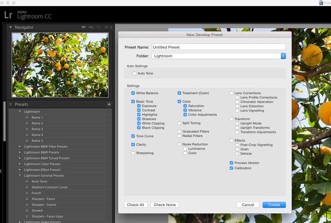 Прелестьсоздания собственных пресетов в том, что это легко сделать, сохранив шагиредактирования любого изображения в каталоге Lightroom.