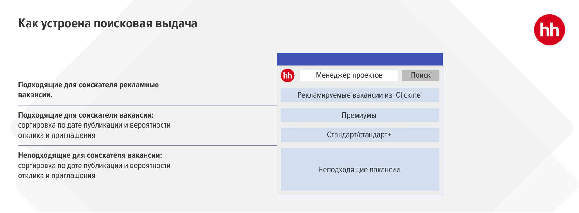 С учетом всего этого Умный поиск поставит пользователю в топ выдачи вакансии для менеджеров ИТ-проектов.