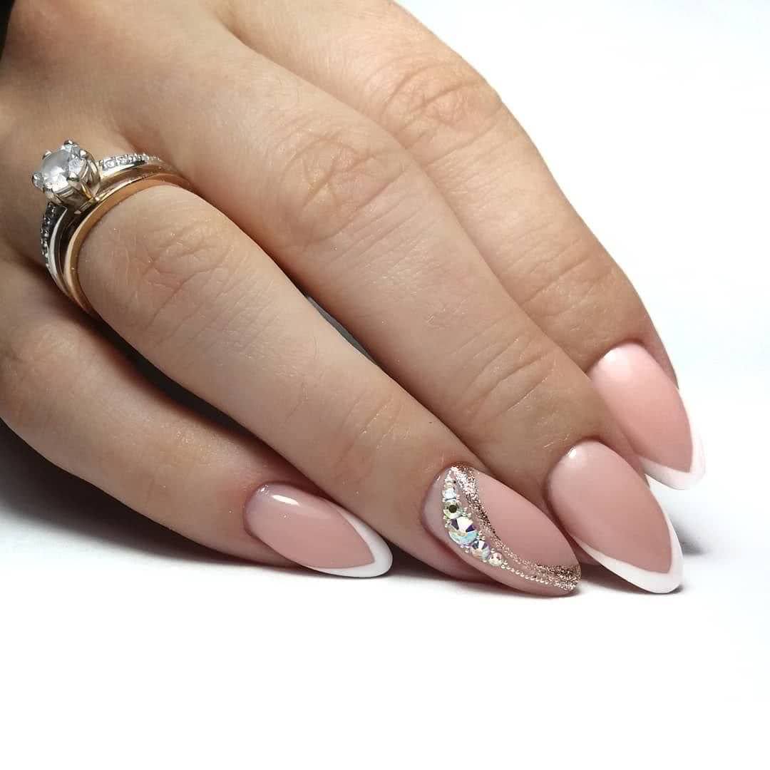 - Родной кистью гель лака закрасить оставшийся кончик белым цветом.