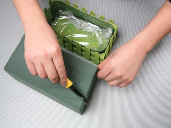 Затем осторожно обрезать флористическую губку до нужных размеров