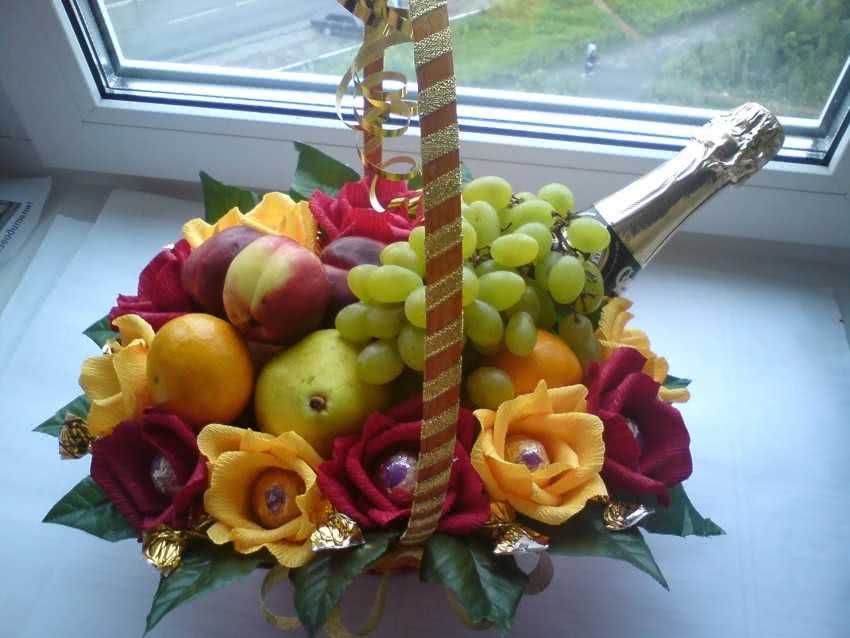 Корзина и самих фрукты подбираются индивидуально, исходя и вкусов одариваемой женщины, времени года и прочих объективных факторов. Порядок действий будет следующий: