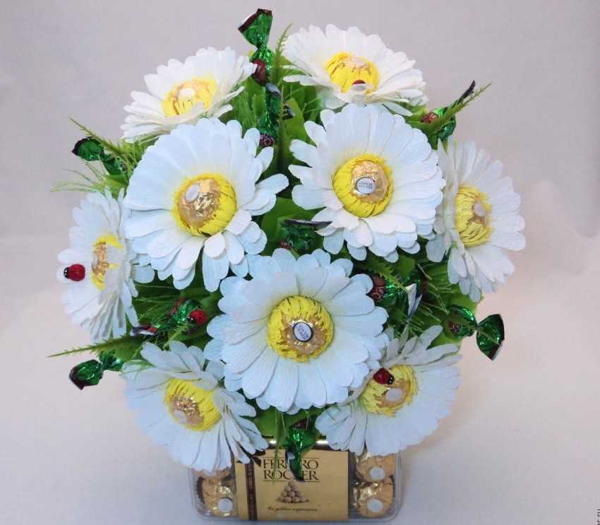 Если букет предполагается дарить в корзине или вазе, то желательно позаботиться о поиске достойного реквизита. Обычно каркасом служат емкости с широким дном: чаши, низкие вазы, шкатулки и так далее.