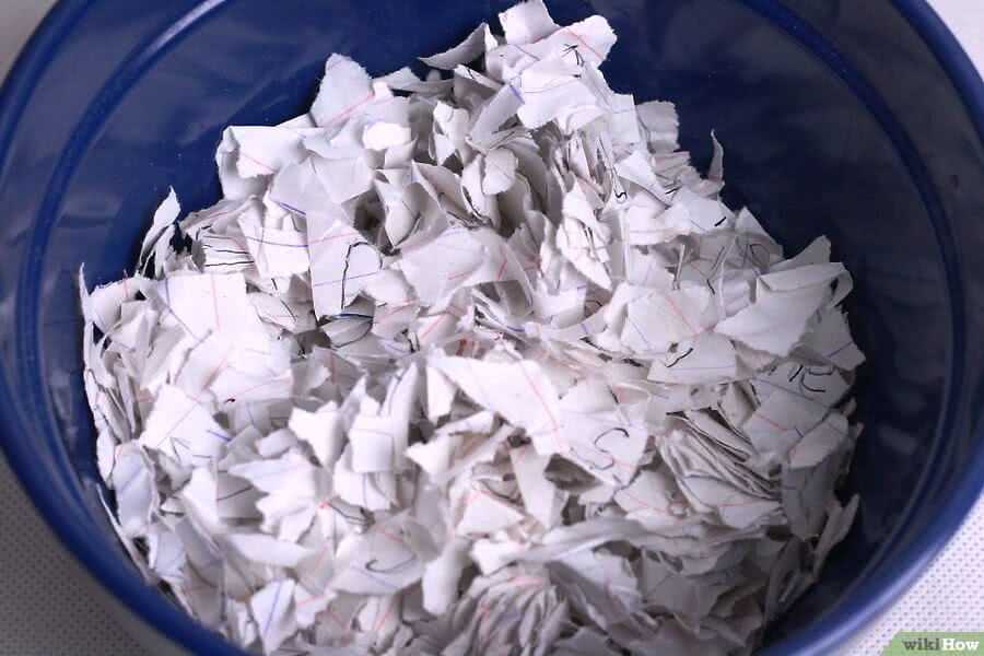 Макулатуру нужно подготовить — разорвите ее на очень мелкие части. Размер каждой части желательно не больше 1-2 см, чтобы эти кусочки легче размачивались.