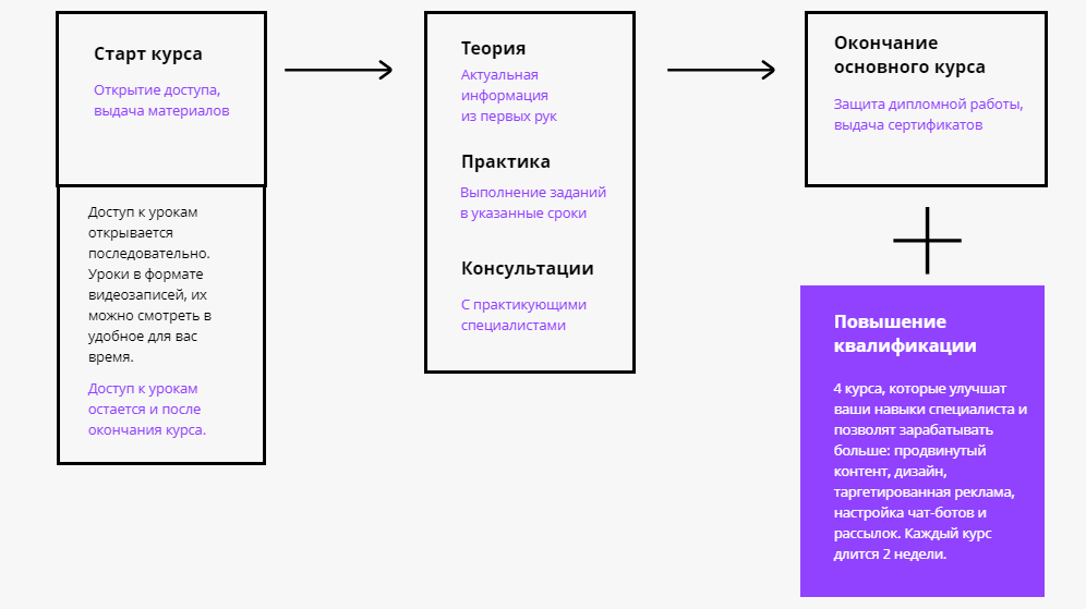 Каждый из них дает основы интернет-маркетинга. Но, конечно, самый важный среди них – «Курс: Профессия – SMM-менеджер». В рамках курса каждый студент проходит 104 урока, которые содержат больше практики, чем теории.