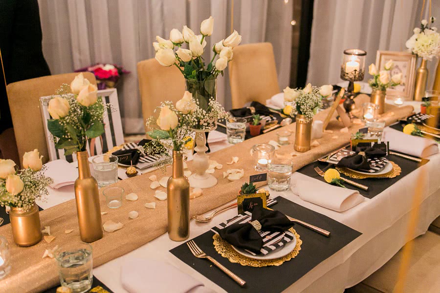 Цветовое оформление стоит выбирать в соответствии со случаем. Например, для дня рождения молодежи подойдут сочные цвета и необычные принты, а также сервировка праздничного стола в черно-белых оттенках с акцентами золота или серебра.