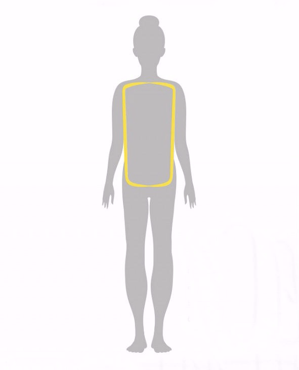 У обладательниц этого типа фигуры прямой силуэт без выраженной талии, но с выдающейся грудью. Основная часть объёма фигуры находится в верхней части тела (зато ноги дольше всех остаются стройными).