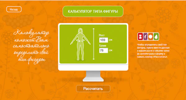 Можно определить тип фигуры онлайн с помощью специальных интернет-программ. Для этого введите параметры вашего тела в специальные графы и нажмите Рассчитать. Программа сама за несколько секунд определит, какой у вас тип фигуры.