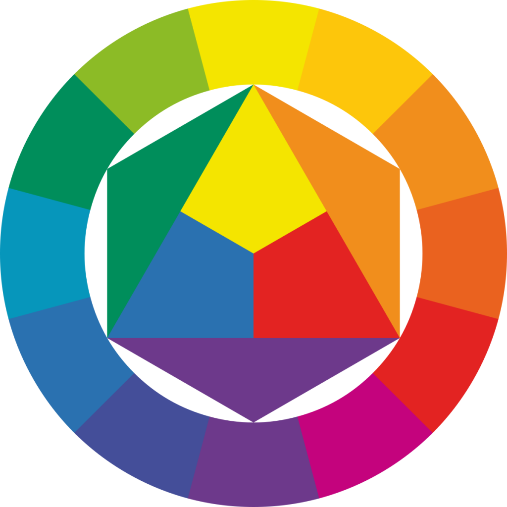Триады. Три цвета, которые равномерно расположены на цветовом круге. Это высококонтрастная цветовая схема, достаточно универсальная, создает смелые, яркие цветовые палитры.