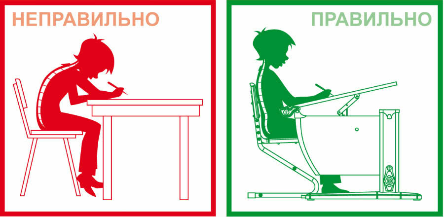 - Создайте условия для правильного положения тела: держите спину прямо, локти должны лежать на столе, а не свисать.