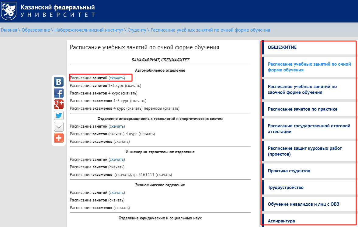 Посмотреть расписание занятий можно непосредственно в личном кабинете КФУ или на сайте университета. В первом случае Вам нужно авторизоваться в аккаунте и в верхней строке меню перейти в соответствующий пункт.