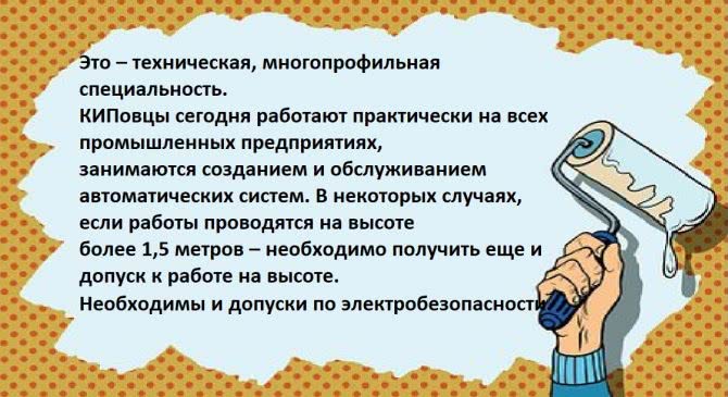 Помимо этого, киповец должен знать основы технологии процесса как оператор и уметь пользоваться специальным оборудованием и электроизмерительными приборами.