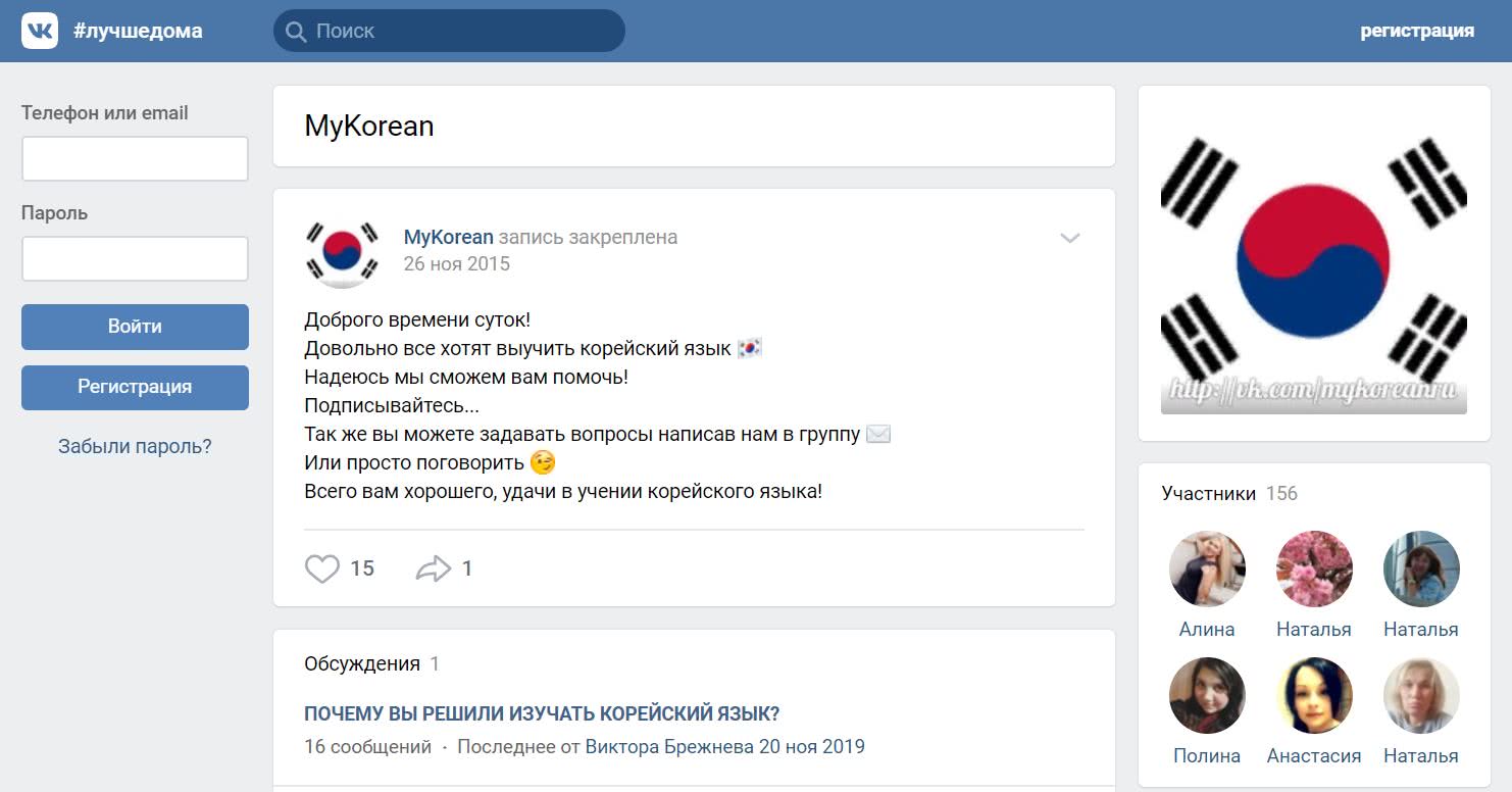 Группа в ВК с полезными материалами Mykorean