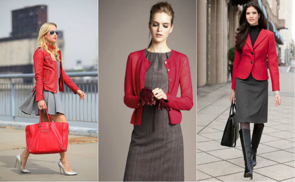 Хорошо сочетается красный с черным и белым. Эти комбинации – настоящая классика. Они не могут быть проигрышными, поэтому они используются стилистами для создания образов знаменитостей, отправляющихся на премьеру или светское мероприятие. Однако сочетаниями в стиле «колор блок» ограничиваться не стоит. Красный отлично смотрится как яркий акцент на фоне приглушенного синего, серого и пыльно розового цвета.