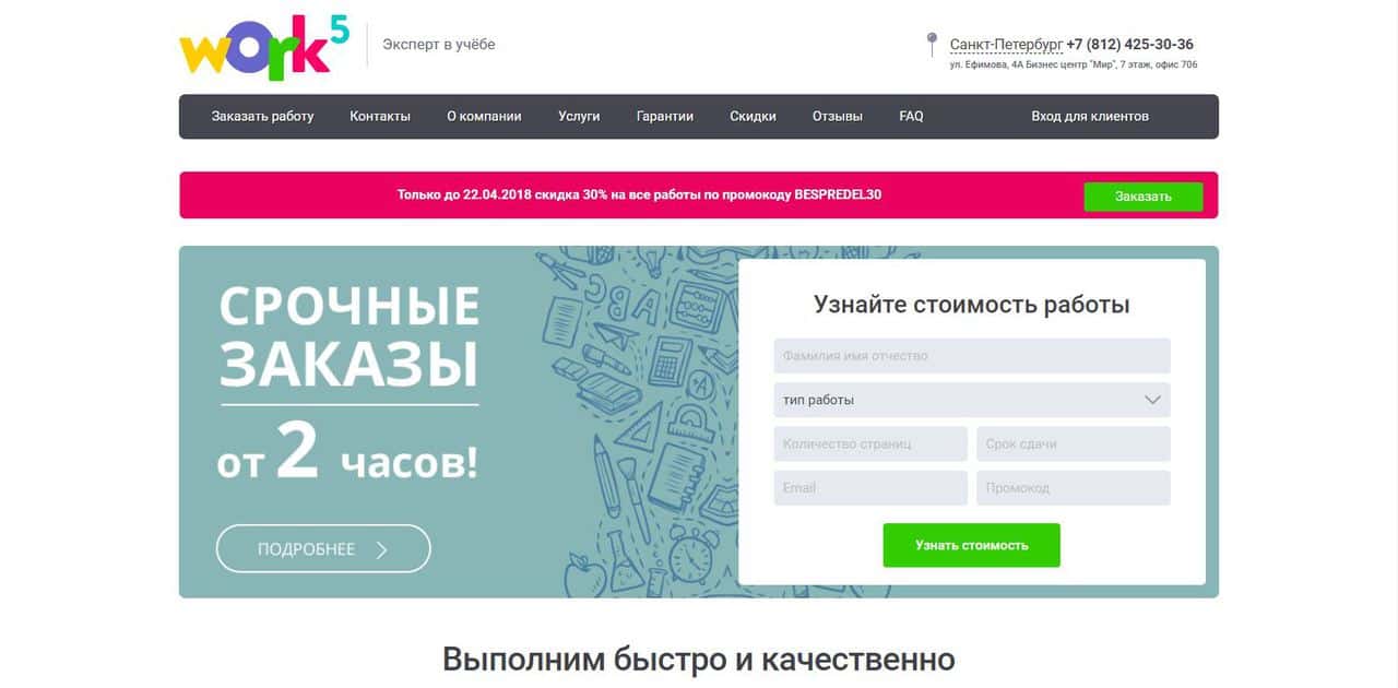 Work5 гарантирует высокий уровень выполненных заказов. Все работы проходят трехступенчатую проверку, сначала на антиплагиат, потом экспертами и в заключении через отдел технического контроля.