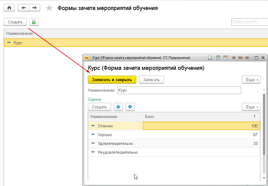 Пропишите наименование обучения, затем нажмите кнопку «Записать и закрыть» (рис.21)