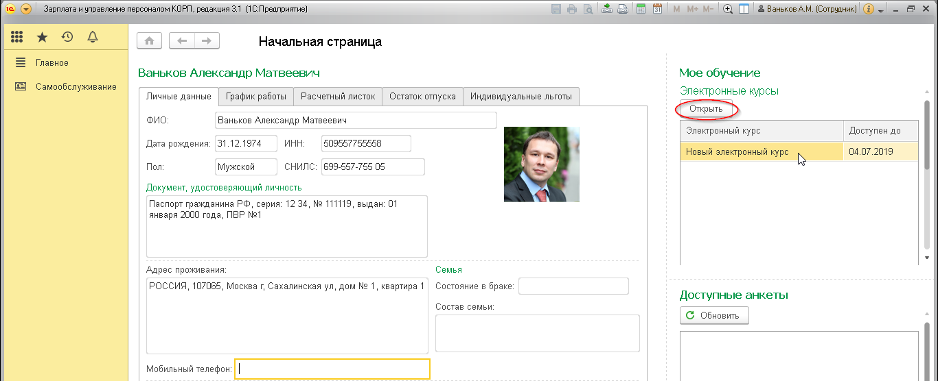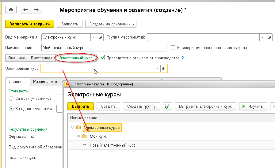 Рис.22. Выбор электронного курса в «1С:ЗУП КОРП»