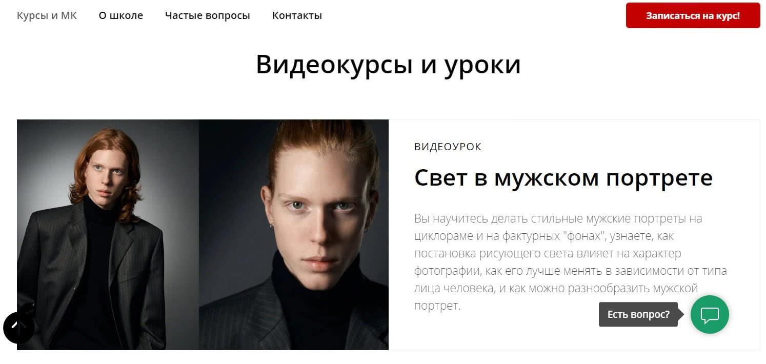 Fotoshkola.net – это огромный агрегатор фотокурсов, который существует уже 10 лет и предлагает онлайн-курсы на 7 языках. На портале около сотни различных мини-курсов от самых разных авторов, собранных в 9 тематических программ. При покупке целой программы курсов на определенную тему (например, портрет или фотошоп) есть риск, что будут пересечения и повторы у различных авторов.