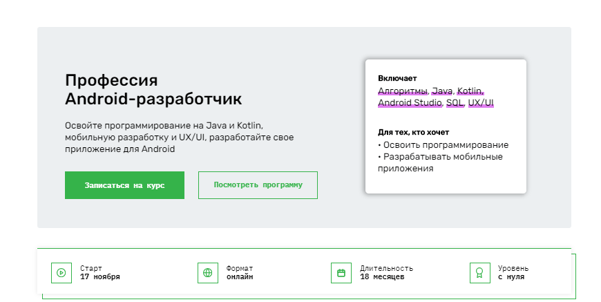 На этом курсе ты изучишь программирование под Android на Java и Kotlin. По итогу обучения ты разработаешь собственное приложение.