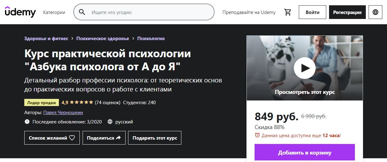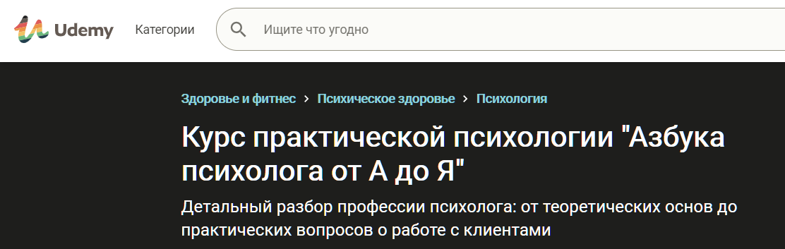 Udemy. Курс практической психологии «Азбука психолога от А до Я»