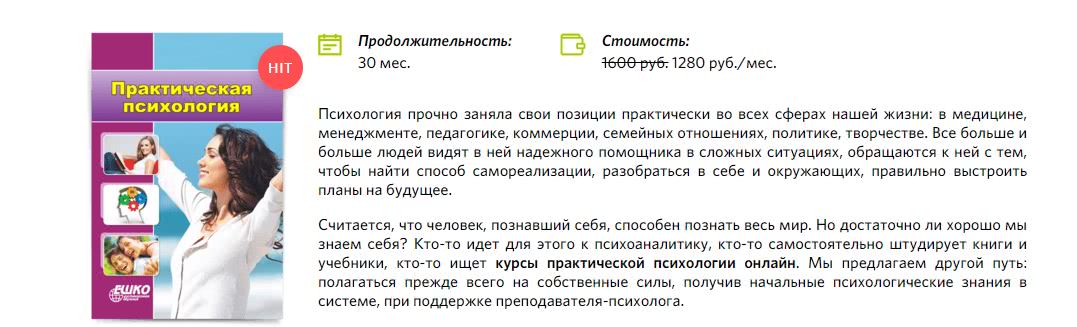 - Много учебных программ по взрослой, детской психологии
