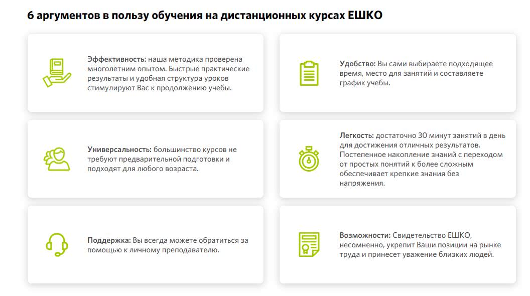 - Возможность дополнительного обучения в Кампусе ЕШКО