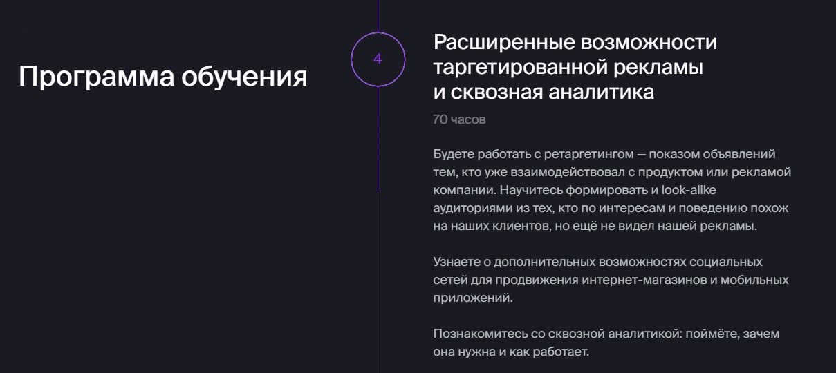 Фрагмент программы обучения на курсе для таргетологов от «Нетологии»
