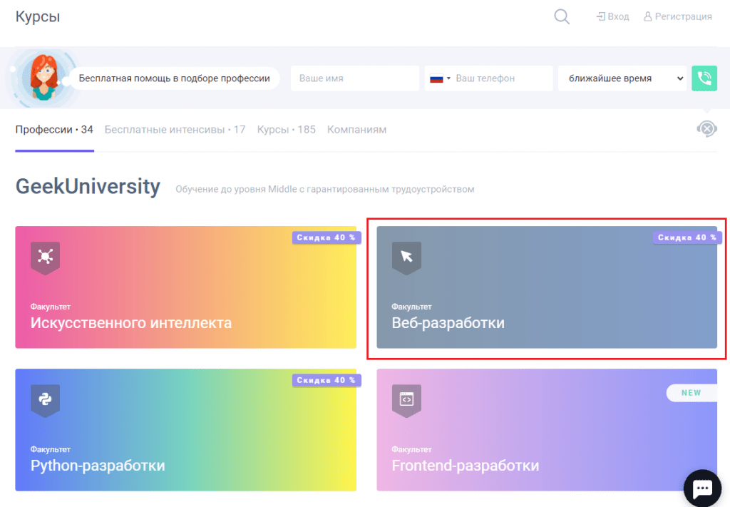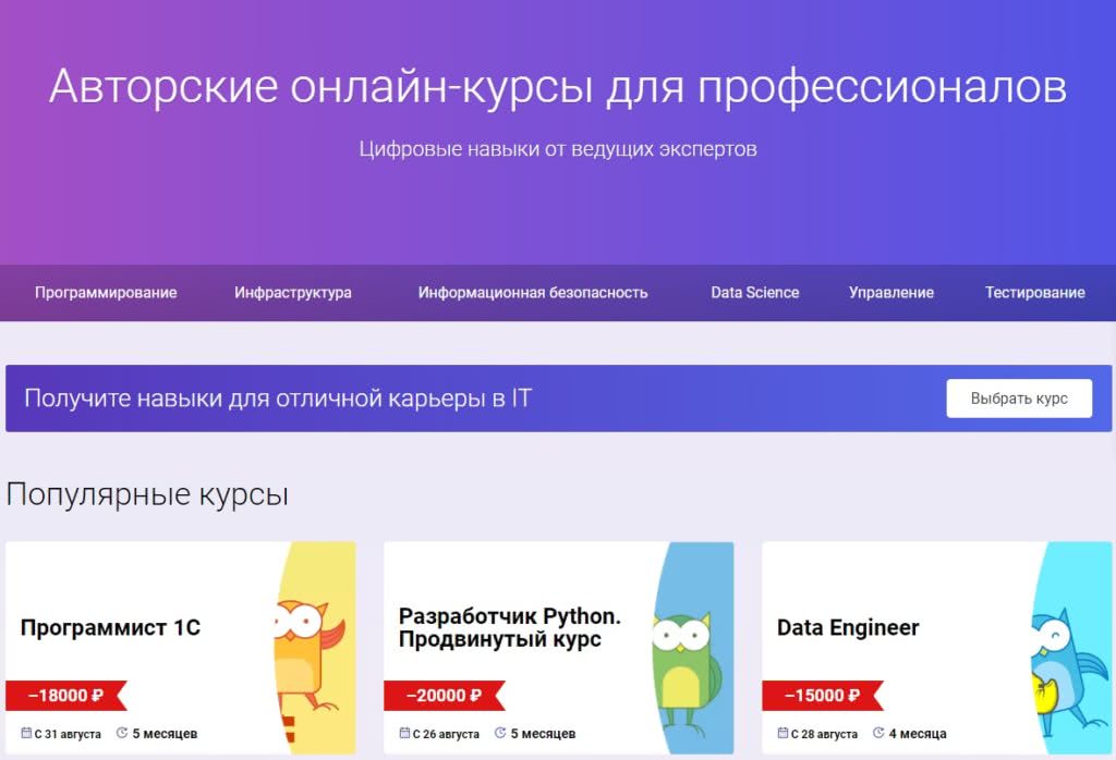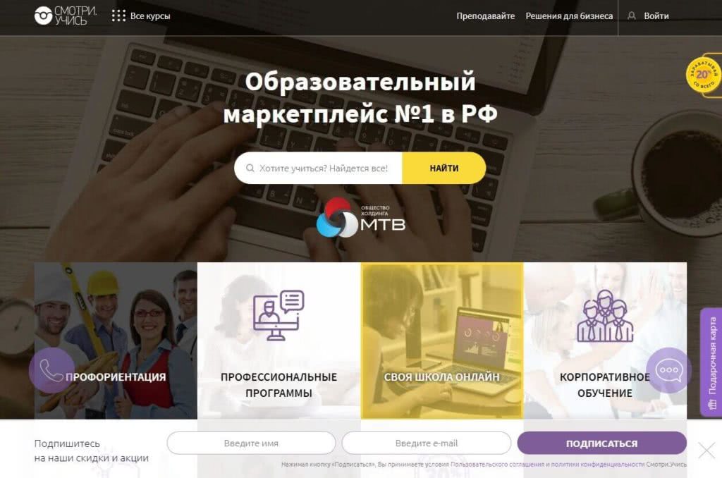 - Множество видов курсов и профессий.