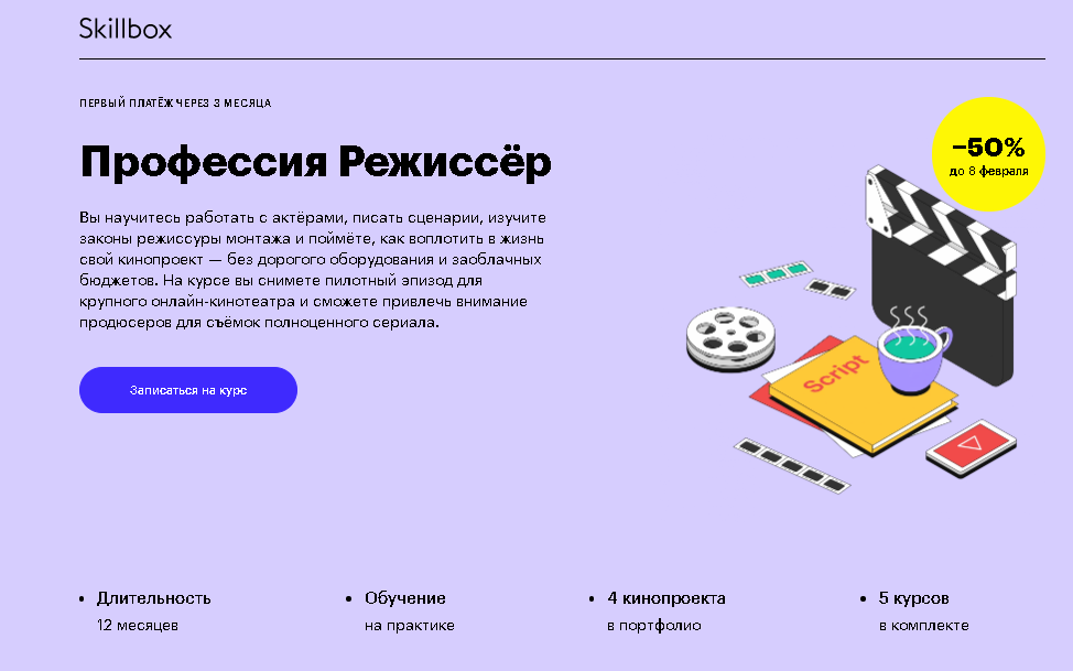 | GeekBrains | Режиссура кино | 6 | 80 000 |