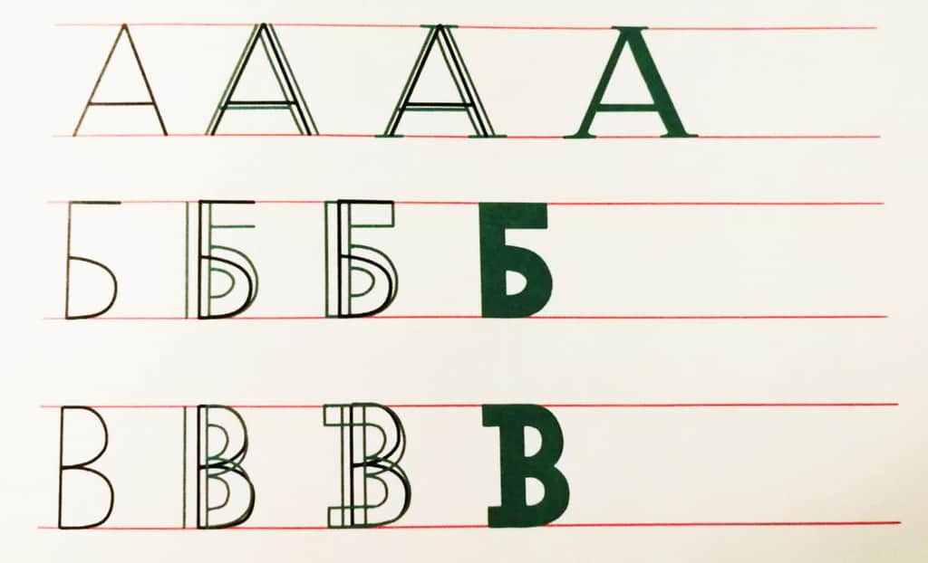 Теперь пришло время придать скелету нашего алфавита какую-нибудь форму. Для этого можно использовать антикву, гротеск или брусковый шрифт (как гротеск, только с засечками).